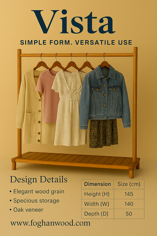 رگال لباس چوبی مدل ویستا از برند معتبر فوقان چوب، انتخابی شیک و کاربردی برای بانوانی است که به نظم، زیبایی و سبک مدرن در دکوراسیون اهمیت میدهند. این رگال با طراحی مینیمال و ساختار مقاوم، مناسب استفاده در اتاق خواب، فضای ورودی یا حتی بوتیکهای لباس است.